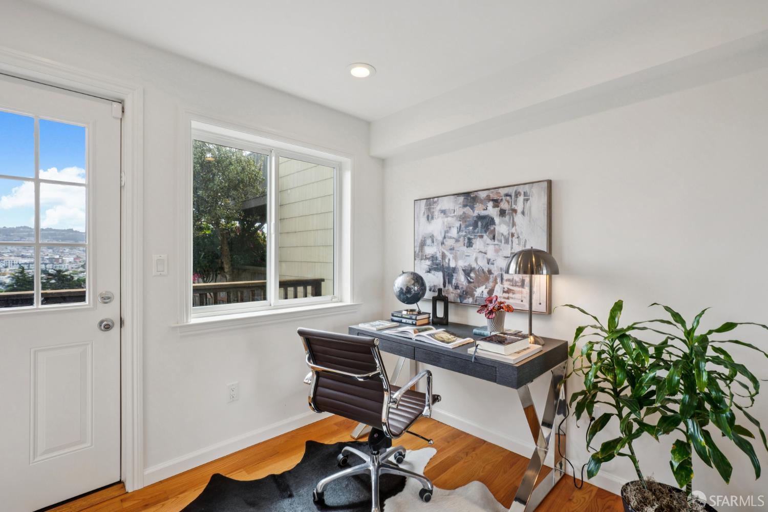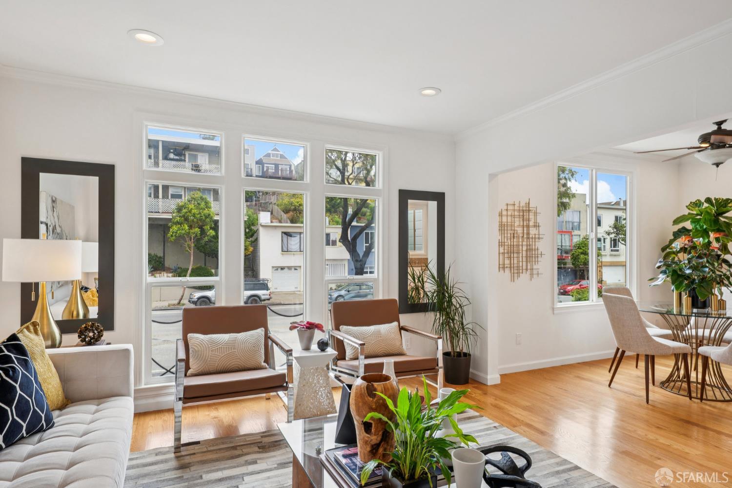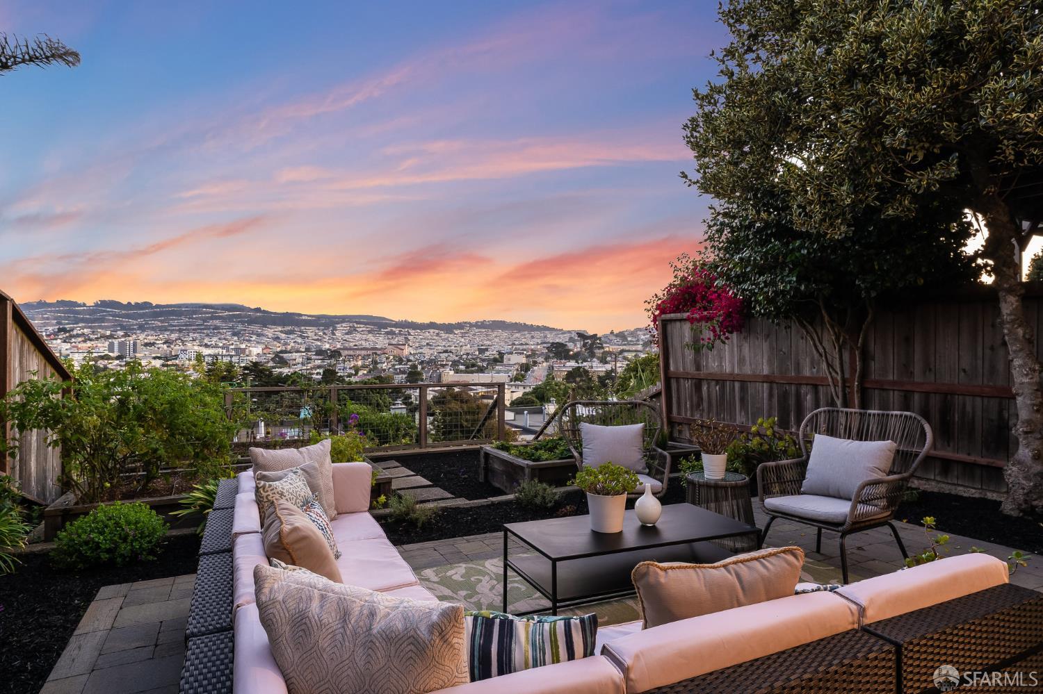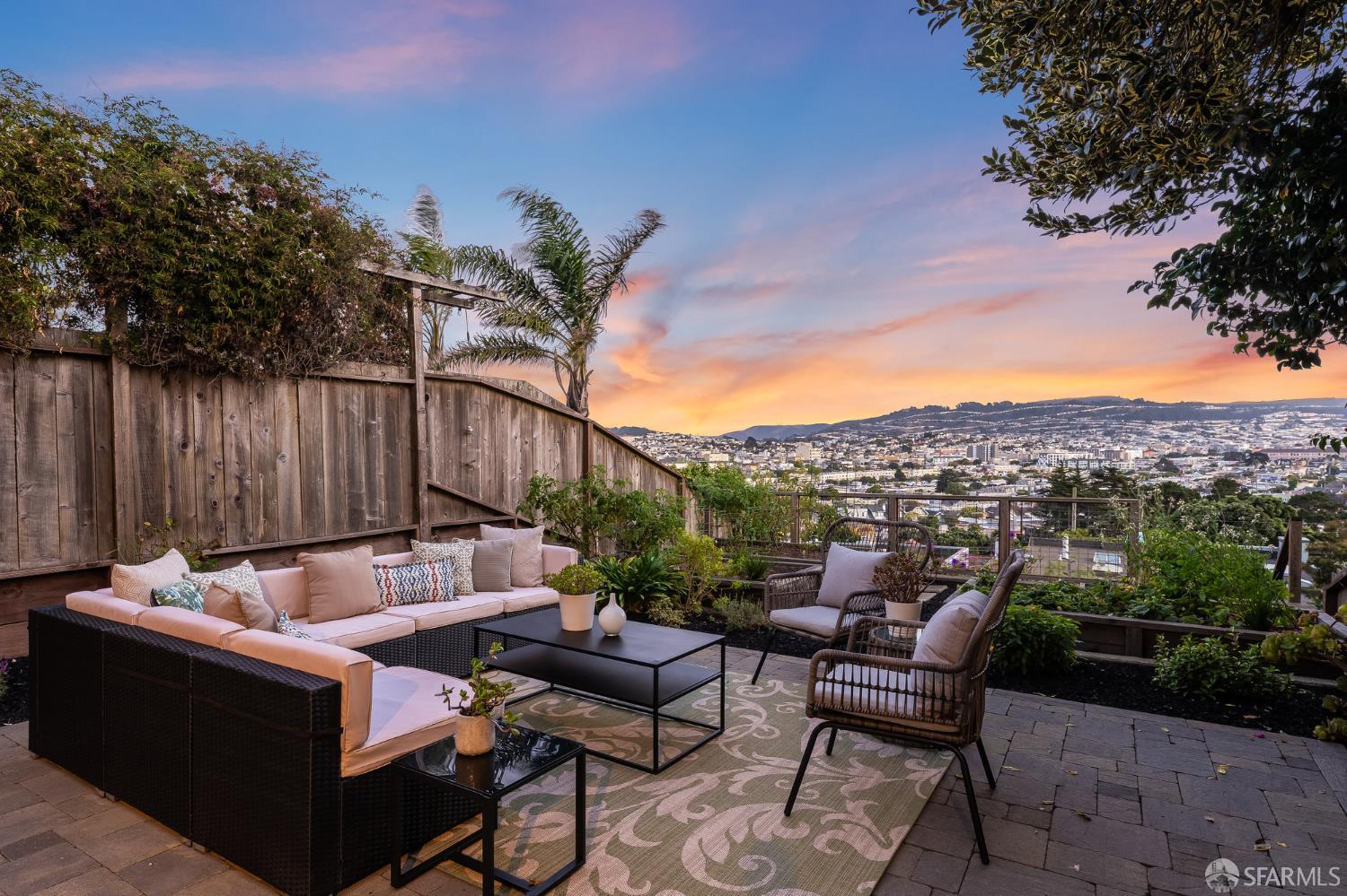 Welcome to 151 Monterey Boulevard, a charming 4 bedroom, 2 bath view home ideally located near transportation and the shops and cafes of Glen Park Village. Blending classic details with modern updates, this inviting residence offers comfort, functionality, and style. The main level showcases a spacious living room with a beautiful period fireplace. Adjacent is the dining area and an updated kitchen with stainless steel appliances, ample cabinets and counter space, ideal for everyday living and hosting. Two generous bedrooms at the rear of the home enjoy unobstructed southern views. A full bath with skylight completes this level. The lower level offers two additional bedrooms, including one with direct access to the landscaped yard. A second full bath, convenient laundry area, and interior access to the one-car garage add to the home's thoughtful layout. The lovely backyard features a large patio for entertaining, a dedicated vegetable garden, a terraced lower garden area, and southern views. Set on a sizable lot, the home provides a seamless balance of indoor and outdoor living in a desirable neighborhood setting. With its flexible floor plan, modern updates, solar, and prime location near BART, Muni, freeways, parks, and schools, 151 Monterey is a special San Francisco home.