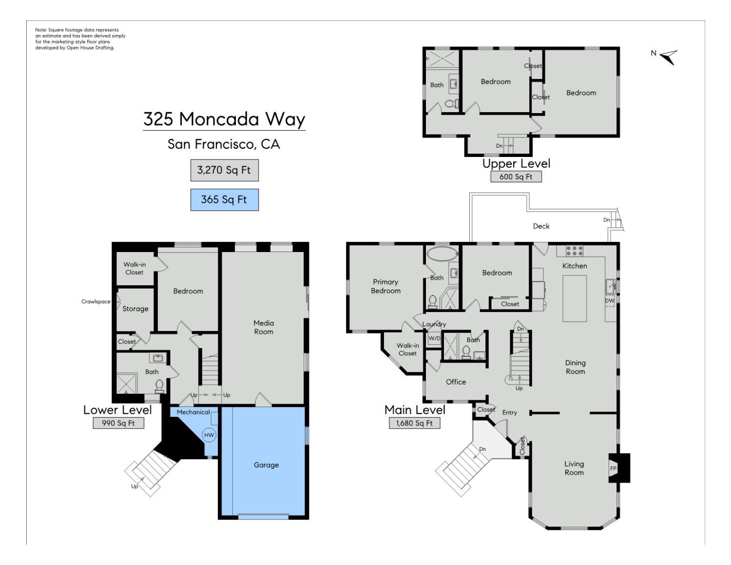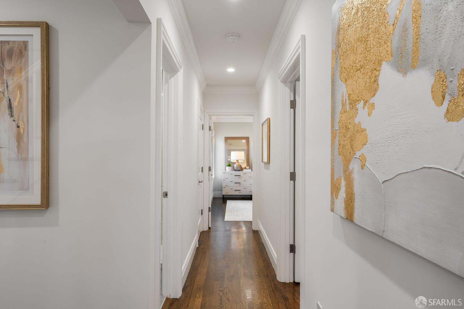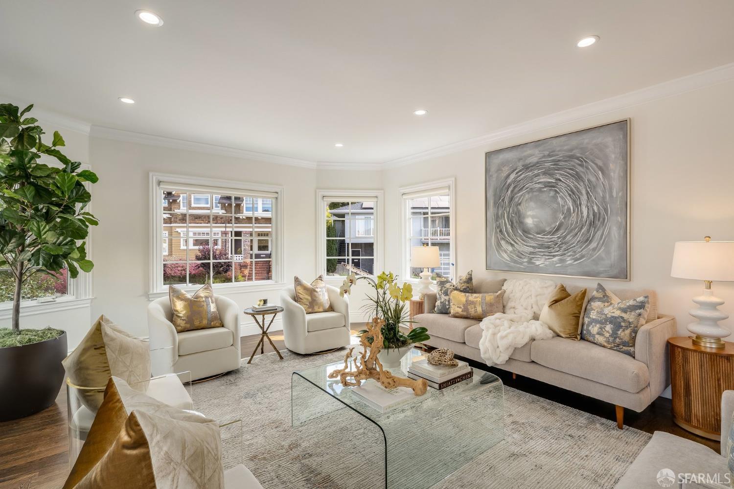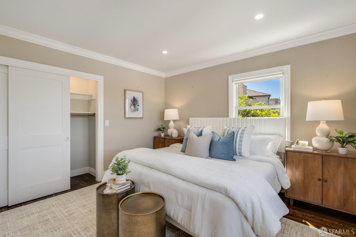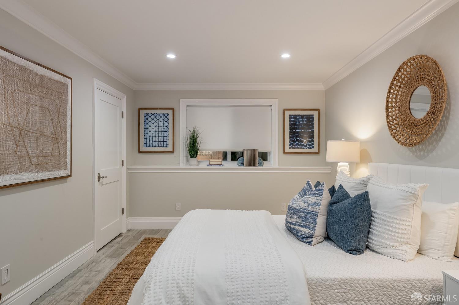 Located on a picturesque street, this beautifully remodeled and generously scaled five-bedroom, four-bath residence, with a family room and separate office, offers a flexible floor plan and timeless appeal in the sought-after Ingleside Terraces neighborhood. A formal entry sets the tone, leading to a spacious, light-filled living room with a custom gas fireplace and an abundance of windows. Adjacent is a large and inviting dining room. Seamlessly connected, the remodeled kitchen serves as a true centerpiece, showcasing Italian imported Carrara marble countertops, a large center island, and stainless steel appliances, with direct access to a deck, perfect for indoor-outdoor living and gatherings. The main level includes two well-proportioned bedrooms, including a generous primary suite, a full bath, an office or study, and laundry. Upstairs, two additional bedrooms and a full bath provide excellent privacy. The lower level features a very large family room with direct access to a lovely and spacious backyard patio, along with an additional bedroom, full bath, and ample storage. This level also offers direct access to the one-car garage, plus two-car side-by-side parking in the driveway. Throughout most of the home, hardwood floors are complemented by custom tile work in the bathrooms and lower level. Custom window coverings from The Shade Store and radiant heating throughout enhance comfort. The home's attractive curb appeal and mature landscaping, thoughtful layout, and high-quality remodel offer a rare combination of style, functionality, and warmth in one of San Francisco's most desirable neighborhoods. Minutes from transportation, Stonestown Galleria, shops and restaurants of West Portal.