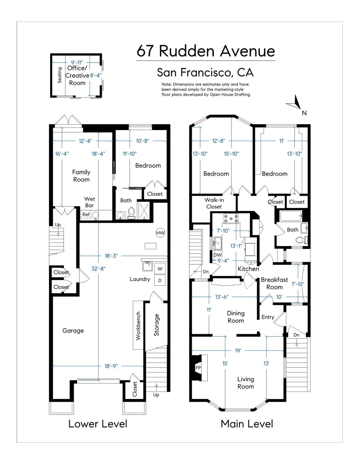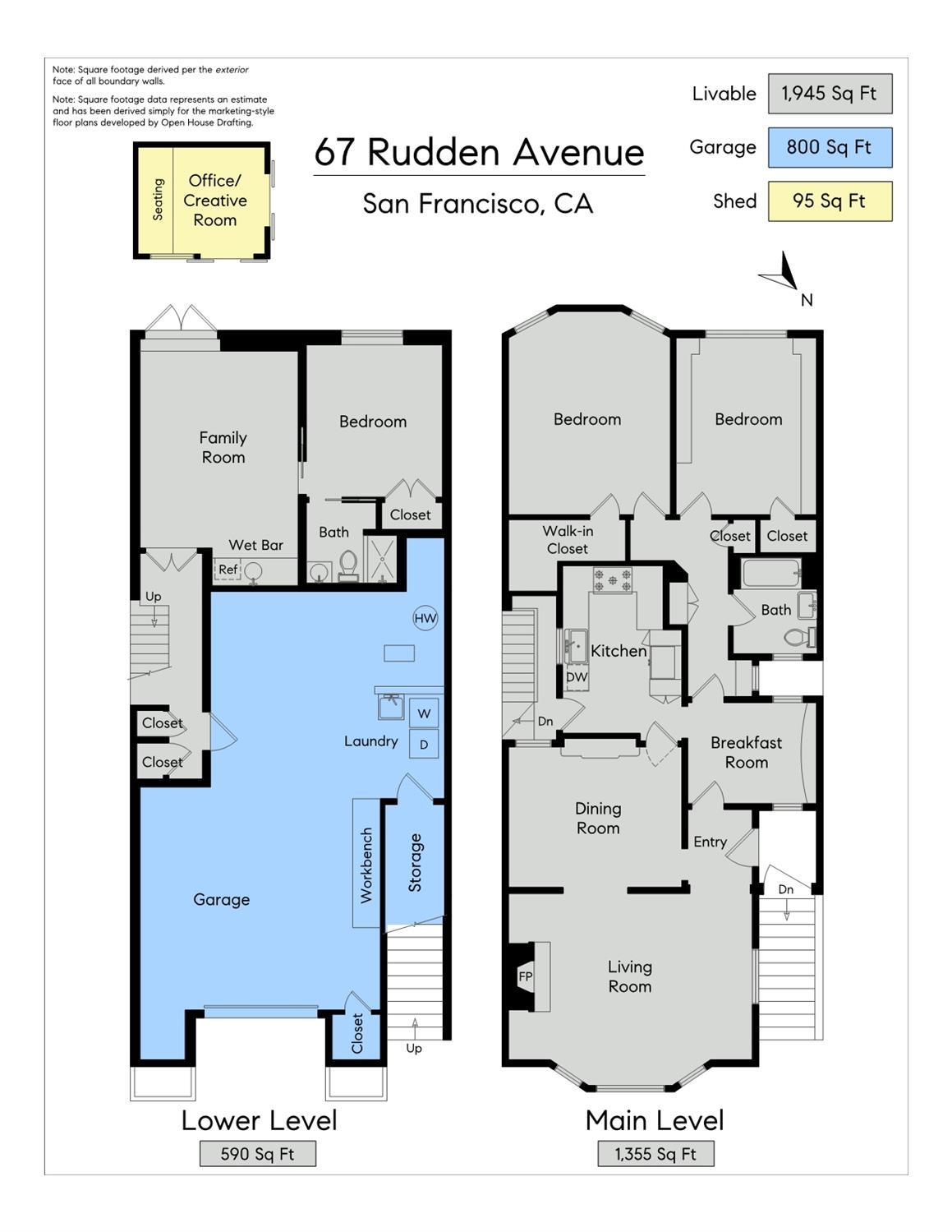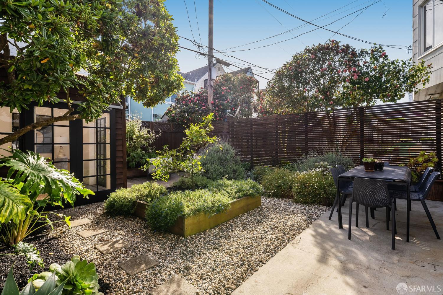 Classic Marina style elegance meets modern comfort at 67 Rudden Avenue. This beautifully remodeled Mission Terrace home offers a versatile two-level floor plan with timeless architectural details and inviting living spaces throughout. The main level features a spacious and light-filled living room, anchored by a classic center fireplace with elegant detailing, barrel ceiling, hill views, and beautiful parquet floors. Period charm and details continue with lovely moldings in the formal dining room accented by a built-in hutch and additional parquet floors. The beautiful and light-filled remodeled kitchen, with an adjoining breakfast room with custom built-in shelving, is ideal for both everyday living and effortless entertaining. Two spacious bedrooms are located in the rear of the home with outlooks to the beautiful garden. A tastefully renovated bathroom completes this level. The lower level expands the home's flexibility with a generous family room with a wet bar/kitchenette, and a large primary with a full bath. The beautifully landscaped yard is accessed on this level and includes a detached bonus space, ideal as a home office, yoga studio, or creative escape. Two lovely patio areas add to the beautiful space and make the backyard a peaceful and relaxing environment. Two car garage with amazing storage and another space for a small car in the driveway completes this beautiful Mission Terrace home. Minutes from the amazing Balboa Park, shops and restaurants of Mission Street, Glen Park, transportation, including BART, MUNI and freeways 101 and 280.