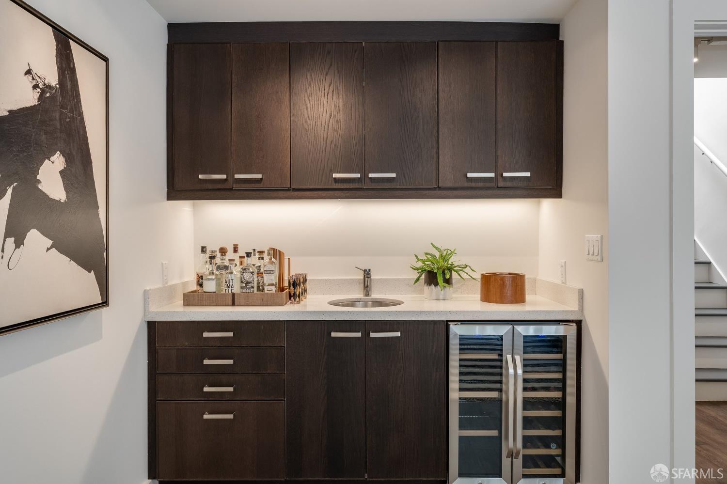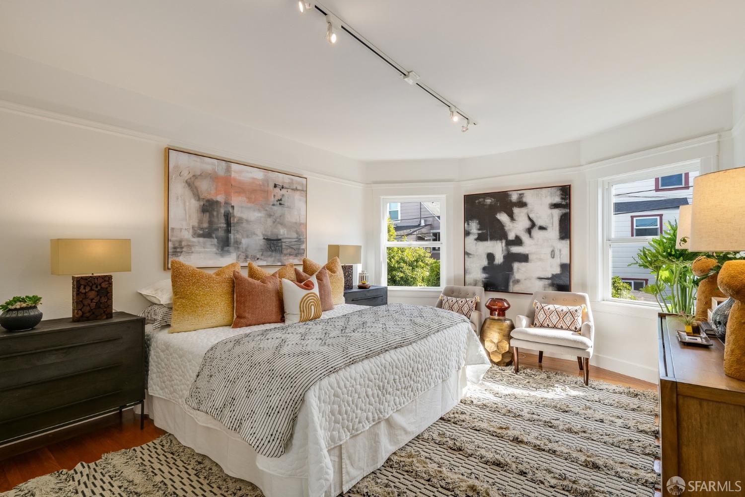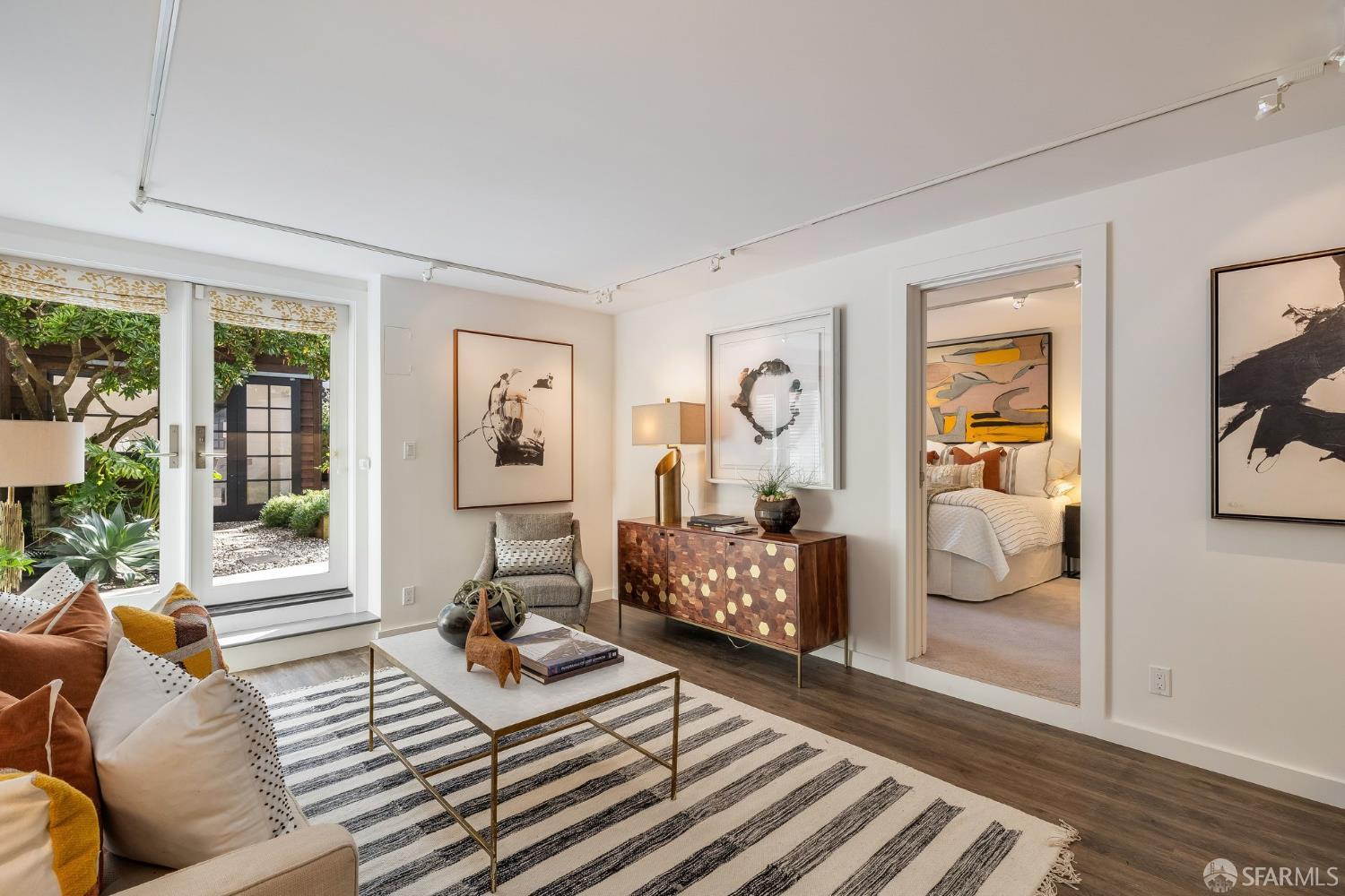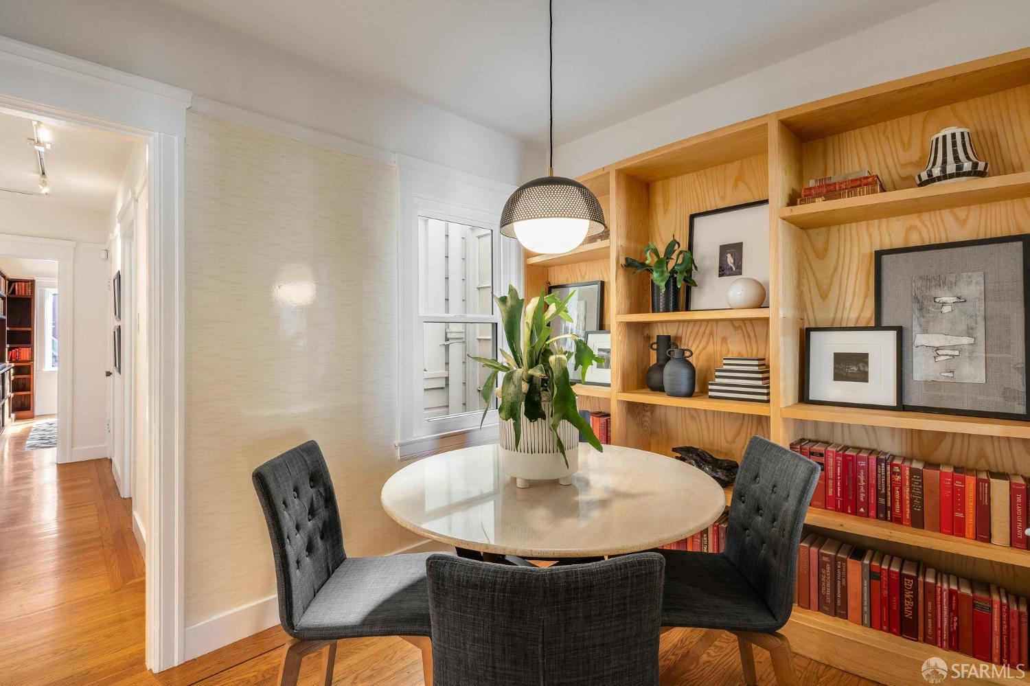 Classic Marina style elegance meets modern comfort at 67 Rudden Avenue. This beautifully remodeled Mission Terrace home offers a versatile two-level floor plan with timeless architectural details and inviting living spaces throughout. The main level features a spacious and light-filled living room, anchored by a classic center fireplace with elegant detailing, barrel ceiling, hill views, and beautiful parquet floors. Period charm and details continue with lovely moldings in the formal dining room accented by a built-in hutch and additional parquet floors. The beautiful and light-filled remodeled kitchen, with an adjoining breakfast room with custom built-in shelving, is ideal for both everyday living and effortless entertaining. Two spacious bedrooms are located in the rear of the home with outlooks to the beautiful garden. A tastefully renovated bathroom completes this level. The lower level expands the home's flexibility with a generous family room with a wet bar/kitchenette, and a large primary with a full bath. The beautifully landscaped yard is accessed on this level and includes a detached bonus space, ideal as a home office, yoga studio, or creative escape. Two lovely patio areas add to the beautiful space and make the backyard a peaceful and relaxing environment. Two car garage with amazing storage and another space for a small car in the driveway completes this beautiful Mission Terrace home. Minutes from the amazing Balboa Park, shops and restaurants of Mission Street, Glen Park, transportation, including BART, MUNI and freeways 101 and 280.